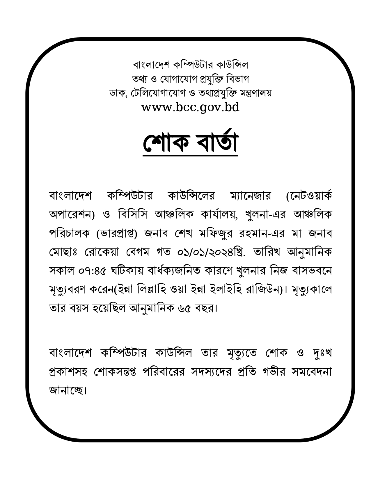 কন্টেন্ট: নোটিশ প্রকাশের তারিখ: ০১-০১-২০২৪ আর্কাইভ তারিখ: ০১-০১-২০৩১